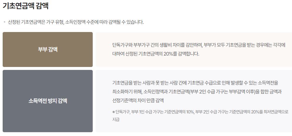 로 산정됩니다. (소득재산 수준이 상대적으로 높으시거나 부부 두 분 모두 기초연금을 받으실 경우에는 감액될 수 있습니다.)