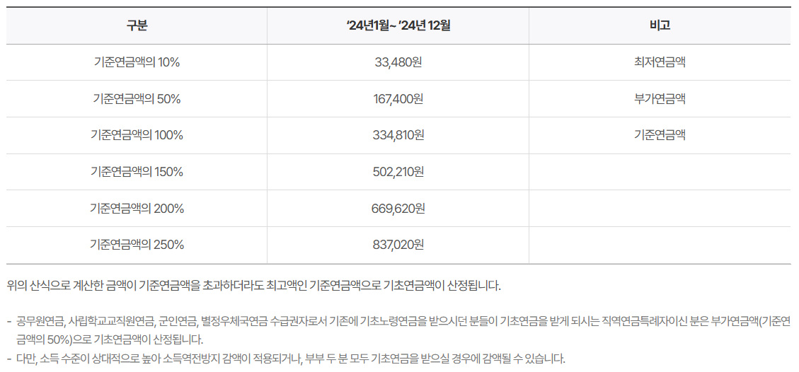 ※3과 4의 경우 기초연금액은 기준연금액의 50%