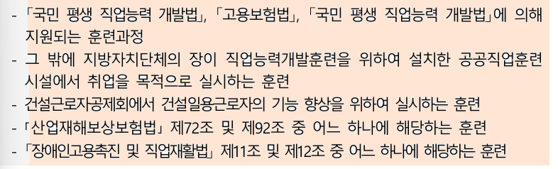 - 고용노동부에서 인정한 훈련과정이 아닌 경우(취미, 오락, 교양 등의 훈련과정 포함)