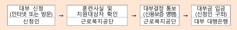 근로복지공단에 생계비대부를 신청하면 훈련사실 및 지원대상 여부를 확인‧결정하여 대부 실행